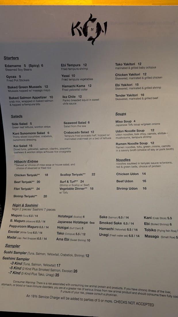 Koi’s commitment to fresh ingredients and elegant presentation makes each visit memorable. We encourage reservations to manage the lively weekend dinner rush, especially Fridays at 7 PM, which fill to capacity. Whether you’re stopping by for a quick lunch or a leisurely dinner, expect exceptional food, carefully made drinks, and a community vibe that invites you to come back again and again.